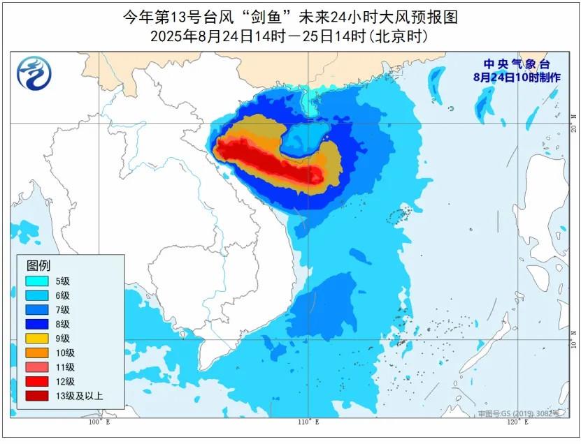 8月24日12时,今年第13号台风“剑鱼”距离海南省三亚市东偏南方向约150公里,强度为台风级,最大风力为13级(38米/秒),预计将以每小时20公里左右的速度向西偏北方向移动,强度逐渐增强。“剑鱼”有何特点、未来发展趋势如何,哪些风险需要特别关注?